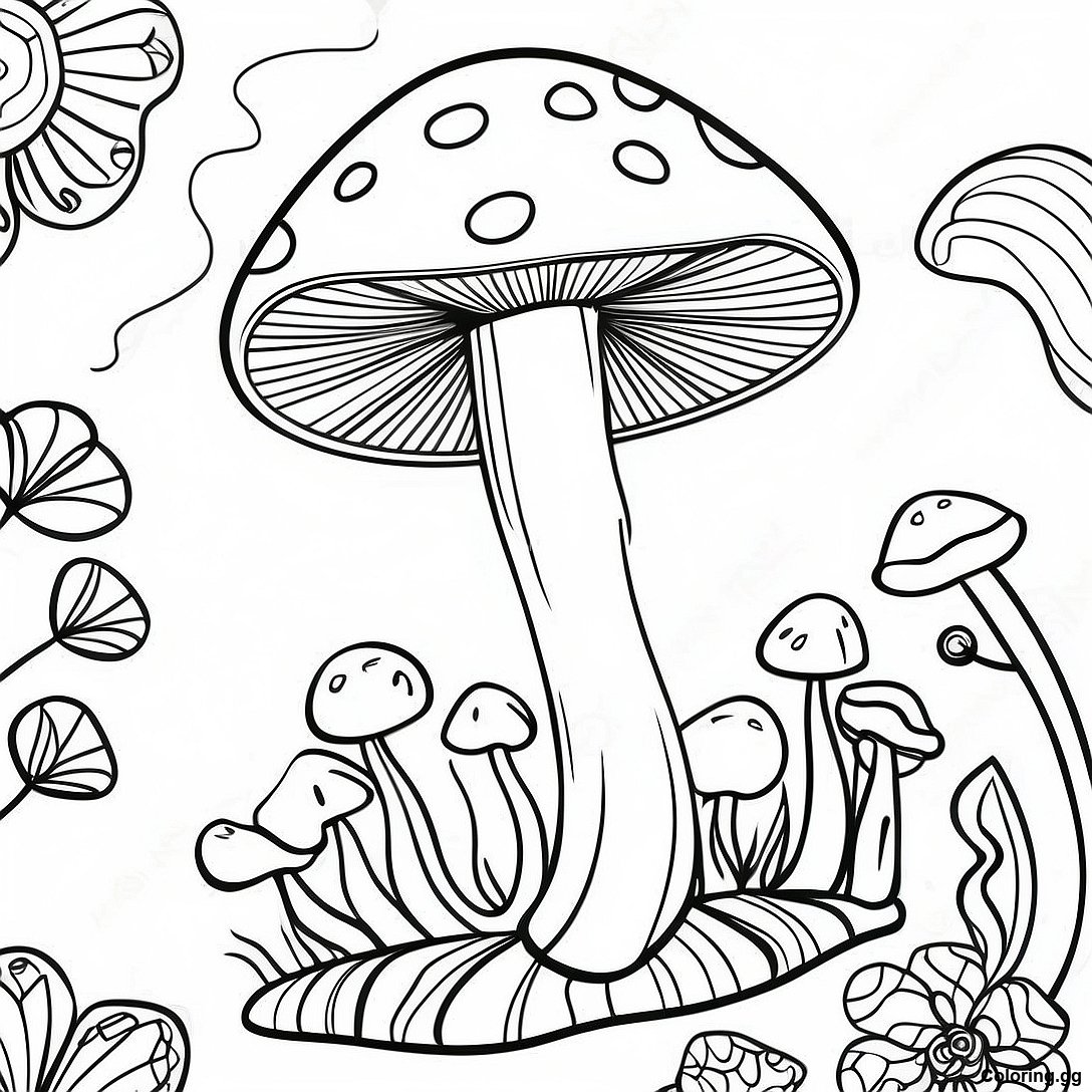 ดาวน์โหลด PDF ที่พิมพ์ได้ของ หน้ากระดาษระบายสีเห็ดหลากสีสไตล์ไซเคเดลิก