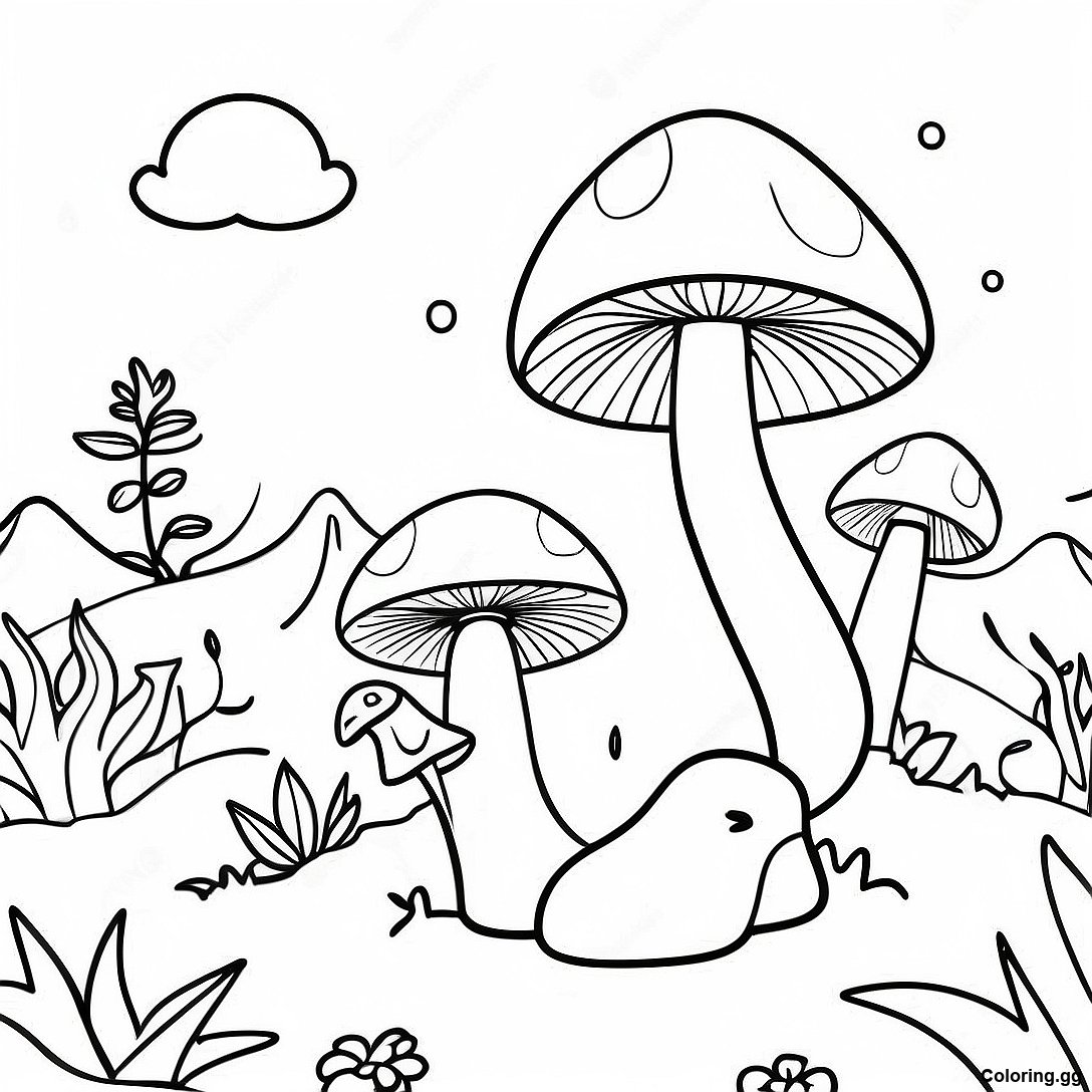 ดาวน์โหลด PDF ที่พิมพ์ได้ของ หน้ากระดาษระบายสีป่าเห็ดสุดเพี้ยน
