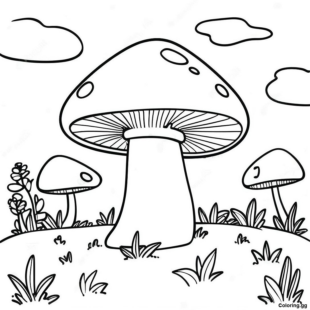 ดาวน์โหลด PDF ที่พิมพ์ได้ของ หน้ากระดาษระบายสีทิวทัศน์เห็ดสุดเก๋