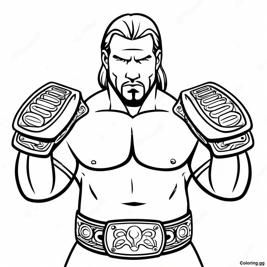 ดาวน์โหลด PDF ที่พิมพ์ได้ของ หน้าระบายสี 3d Triple H ถือเข็มขัดสองใบ