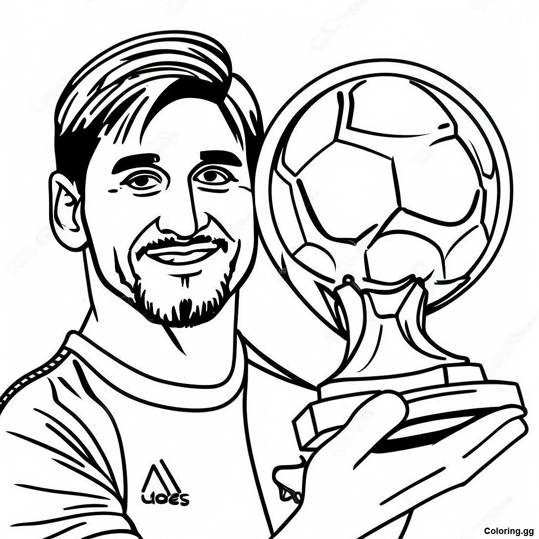 ดาวน์โหลด PDF ที่พิมพ์ได้ของ หน้าระบายสี ลิโอเนล เมสซี่ กับถ้วยรางวัล