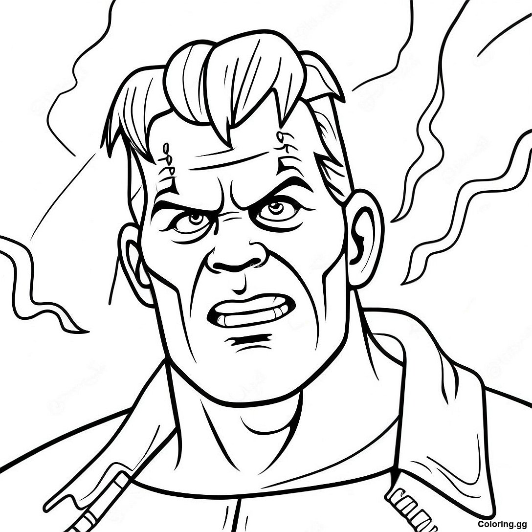 หน้าระบายสีแฟรงเกนสไตน์ที่น่ากลัวพร้อมฟ้าผ่า