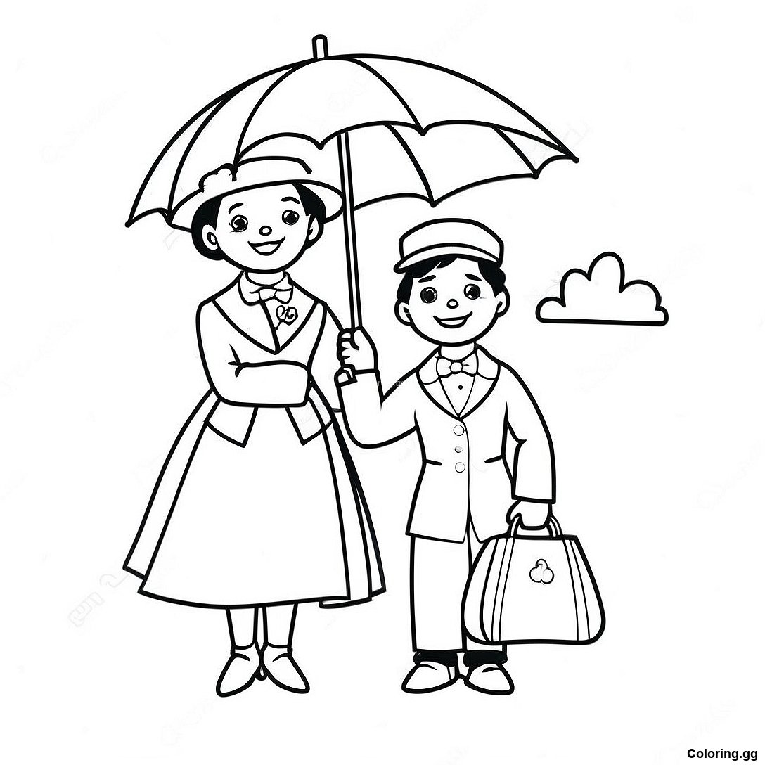 ดาวน์โหลด PDF ที่พิมพ์ได้ของ หน้าระบายสีแมรี่ ปอปปินส์กับเบิร์ต