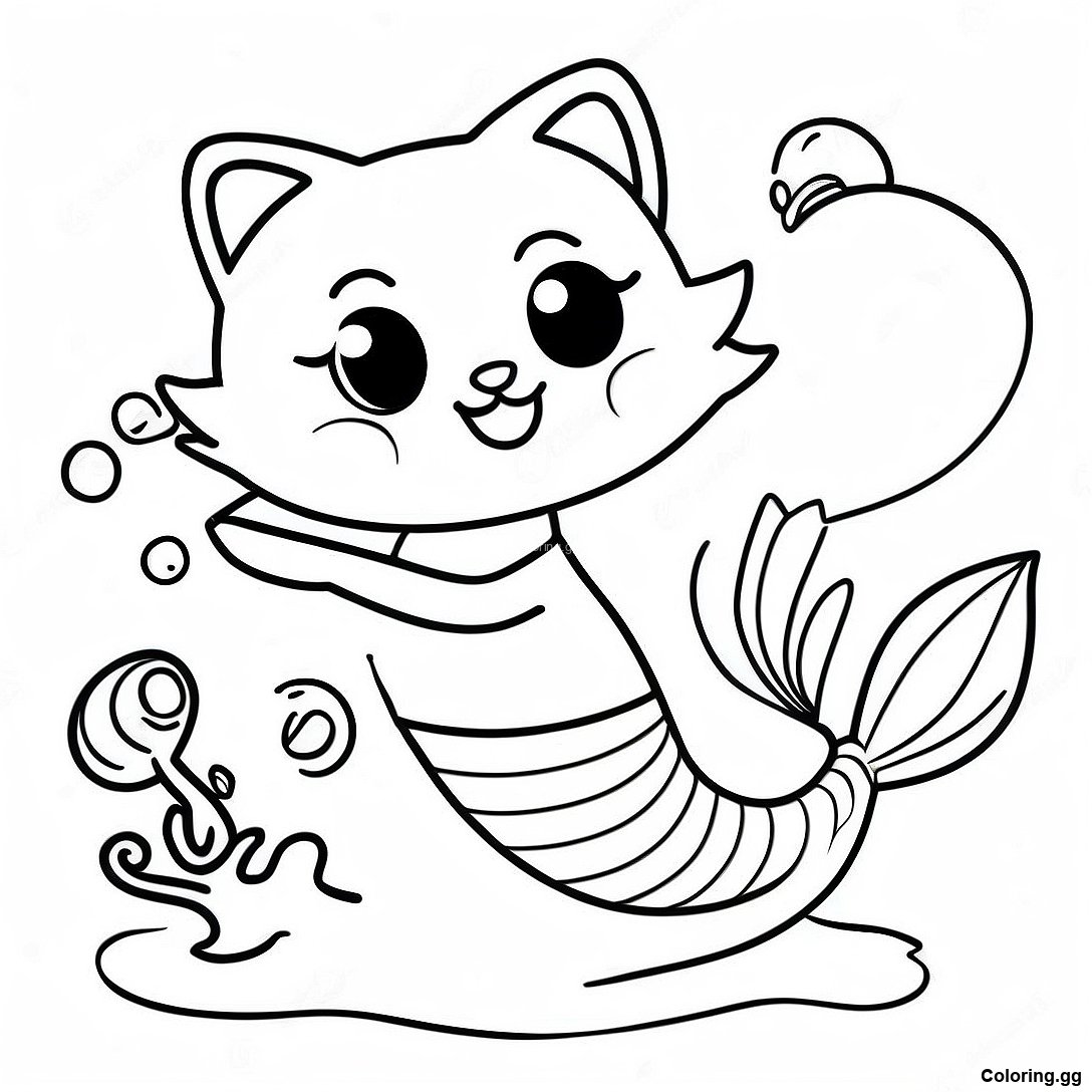 ดาวน์โหลด PDF ที่พิมพ์ได้ของ หน้าระบายสีแมวเงือกเล่นน้ำ