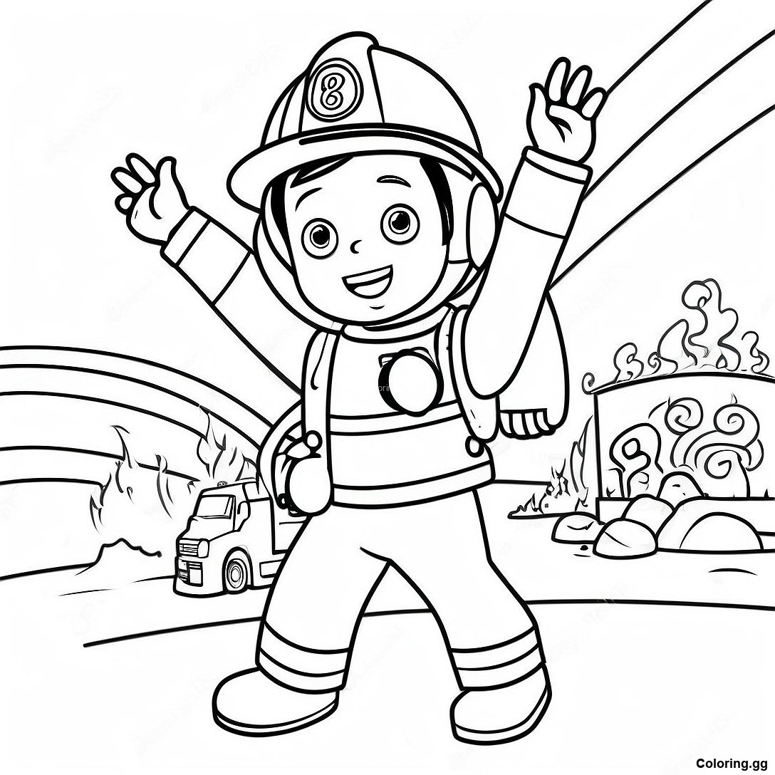 นักผจญเพลิงน่ารักขับรถดับเพลิง ระบายสี