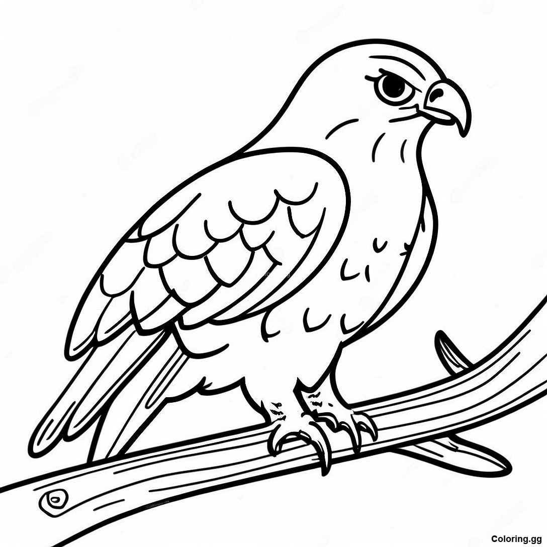 ดาวน์โหลด PDF ที่พิมพ์ได้ของ หน้าระบายสีเหยี่ยวที่สง่างามนั่งอยู่บนกิ่งไม้