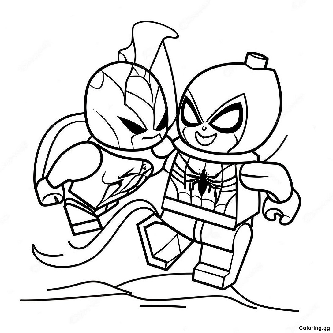ดาวน์โหลด PDF ที่พิมพ์ได้ของ หน้าระบายสีเลโก้สไปเดอร์แมนต่อสู้กับกรีนกอบลิน