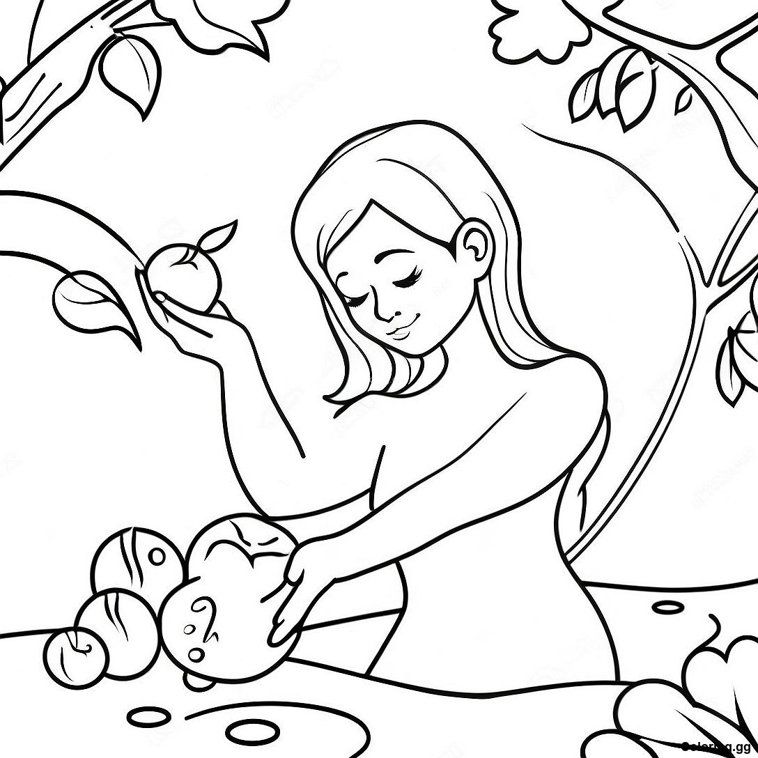 ดาวน์โหลด PDF ที่พิมพ์ได้ของ หน้าระบายสีอีฟเก็บผลไม้ต้องห้าม