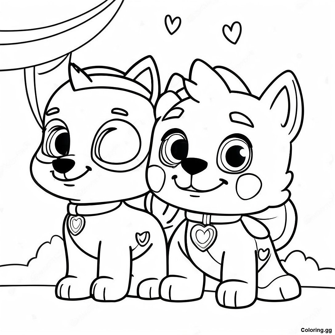 ดาวน์โหลด PDF ที่พิมพ์ได้ของ หน้าระบายสีการผจญภัยวันวาเลนไทน์ของ Paw Patrol ที่สนุกสนาน