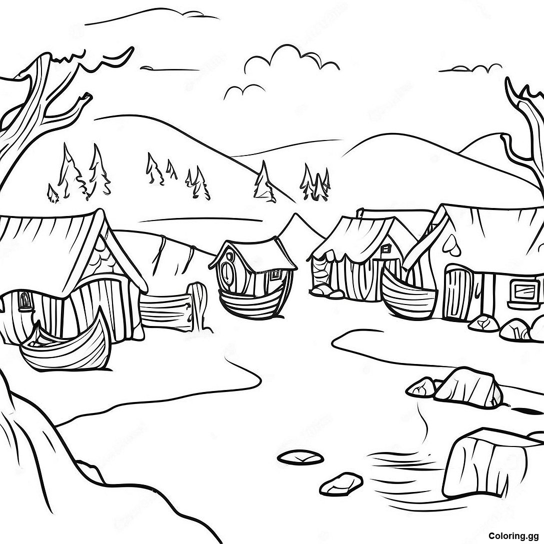 ดาวน์โหลด PDF ที่พิมพ์ได้ของ หน้าระบายสีของฉากหมู่บ้านไวกิ้ง