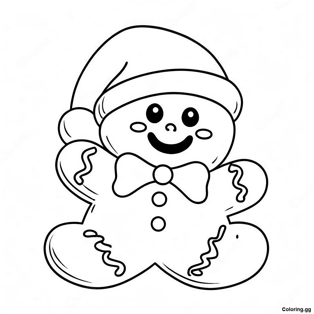 ดาวน์โหลด PDF ที่พิมพ์ได้ของ หน้าระบายสีขนมปังขิงในหมวกซานต้า