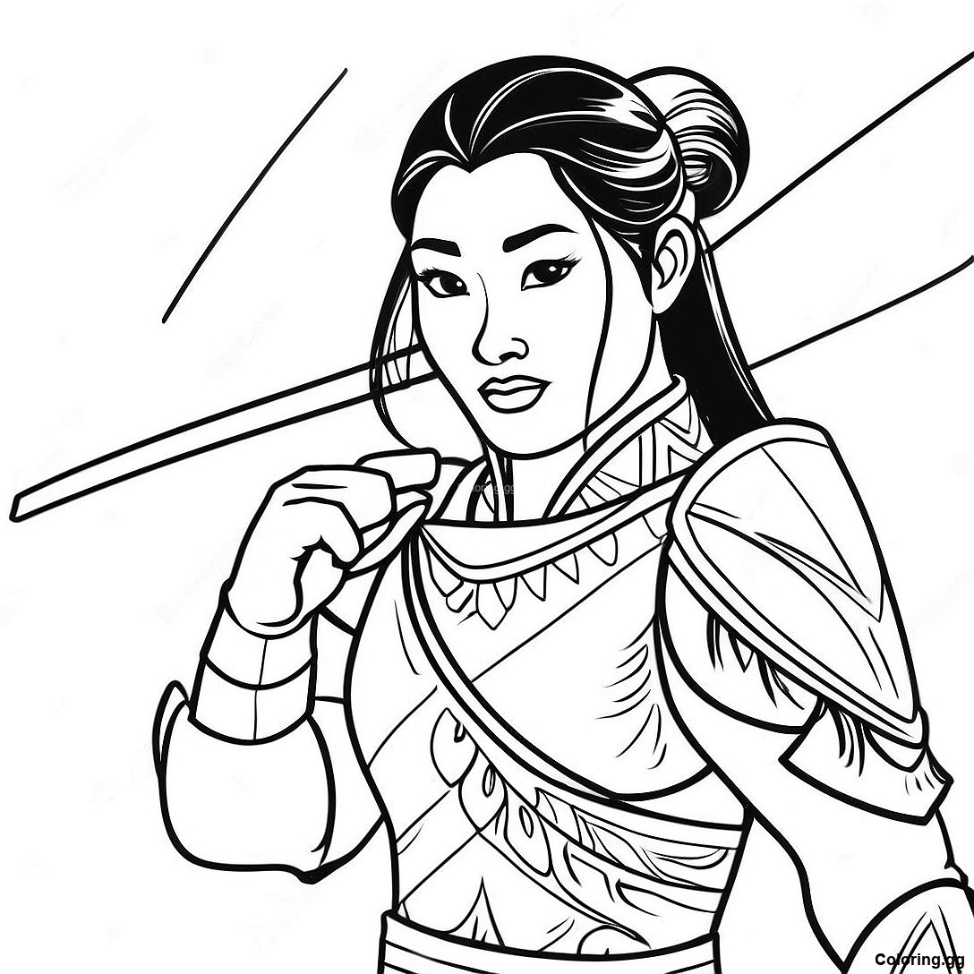 ดาวน์โหลด PDF ที่พิมพ์ได้ของ หน้าระบายสีมู่หลานในชุดเกราะนักรบ
