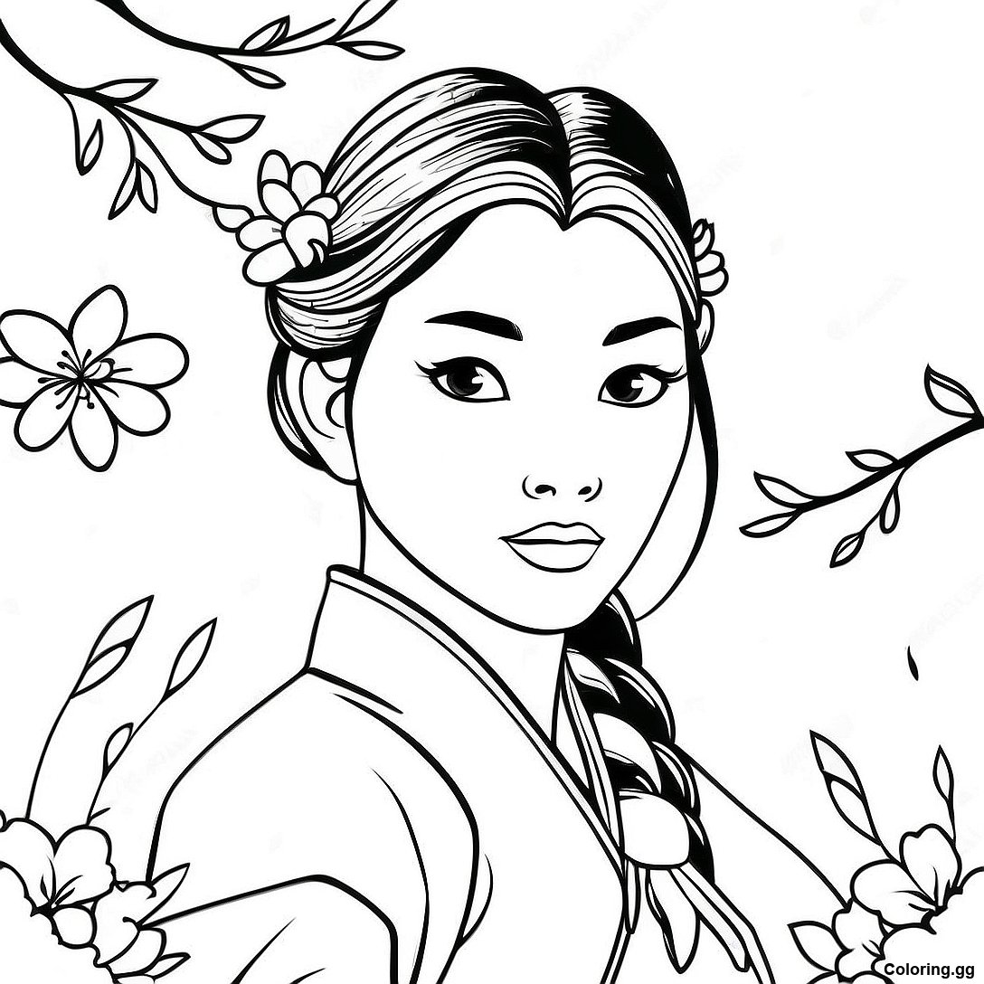 ดาวน์โหลด PDF ที่พิมพ์ได้ของ หน้าระบายสีมู่หลานกับดอกซากุระ