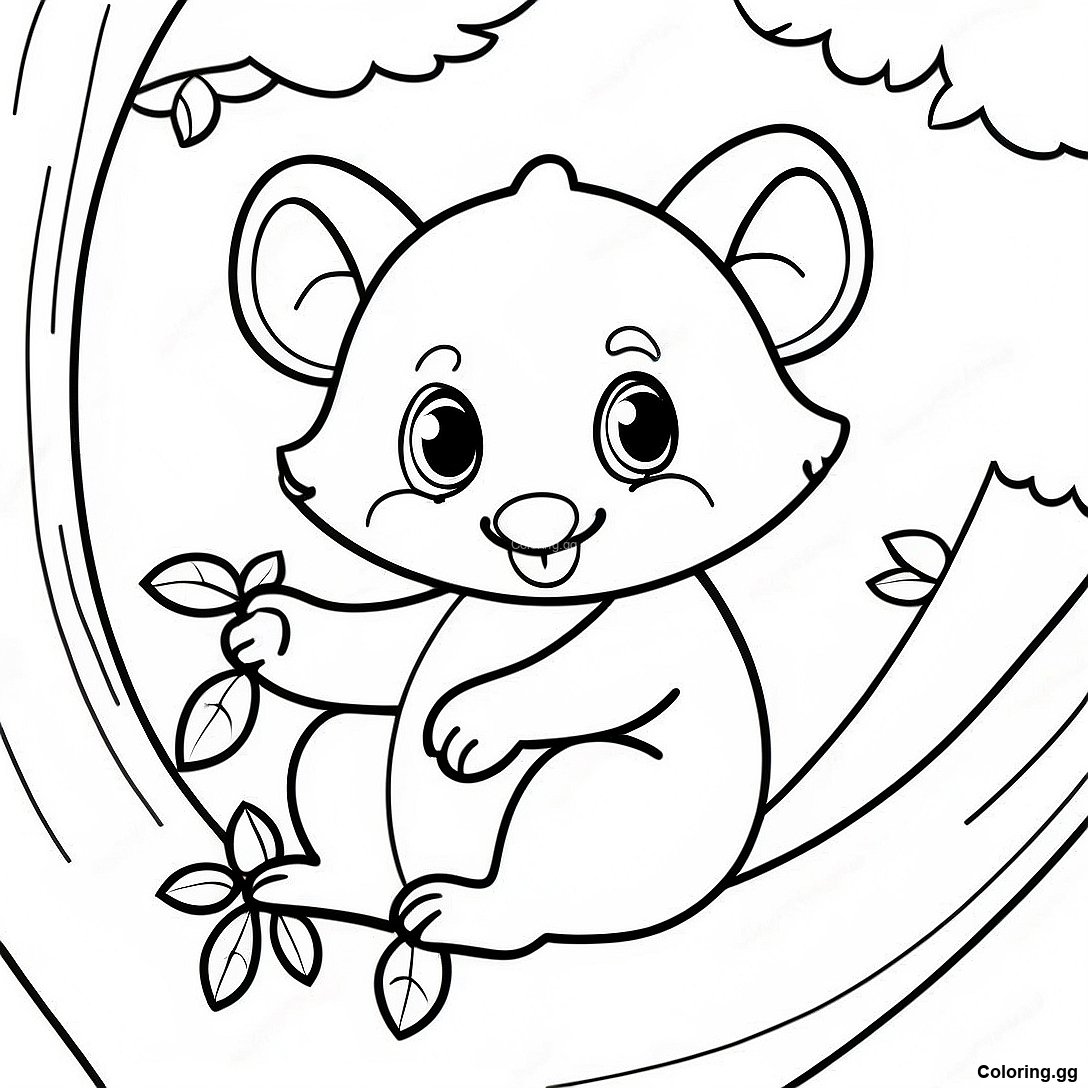 ดาวน์โหลด PDF ที่พิมพ์ได้ของ หน้าระบายสีพอสซัมที่น่ารักในต้นไม้