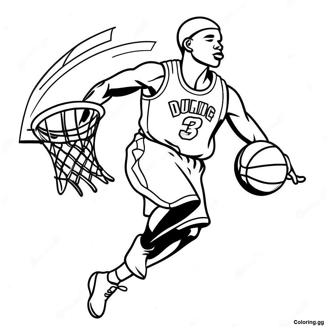 ดาวน์โหลด PDF ที่พิมพ์ได้ของ หน้าระบายสีผู้เล่นบาสเกตบอลที่ดังก์