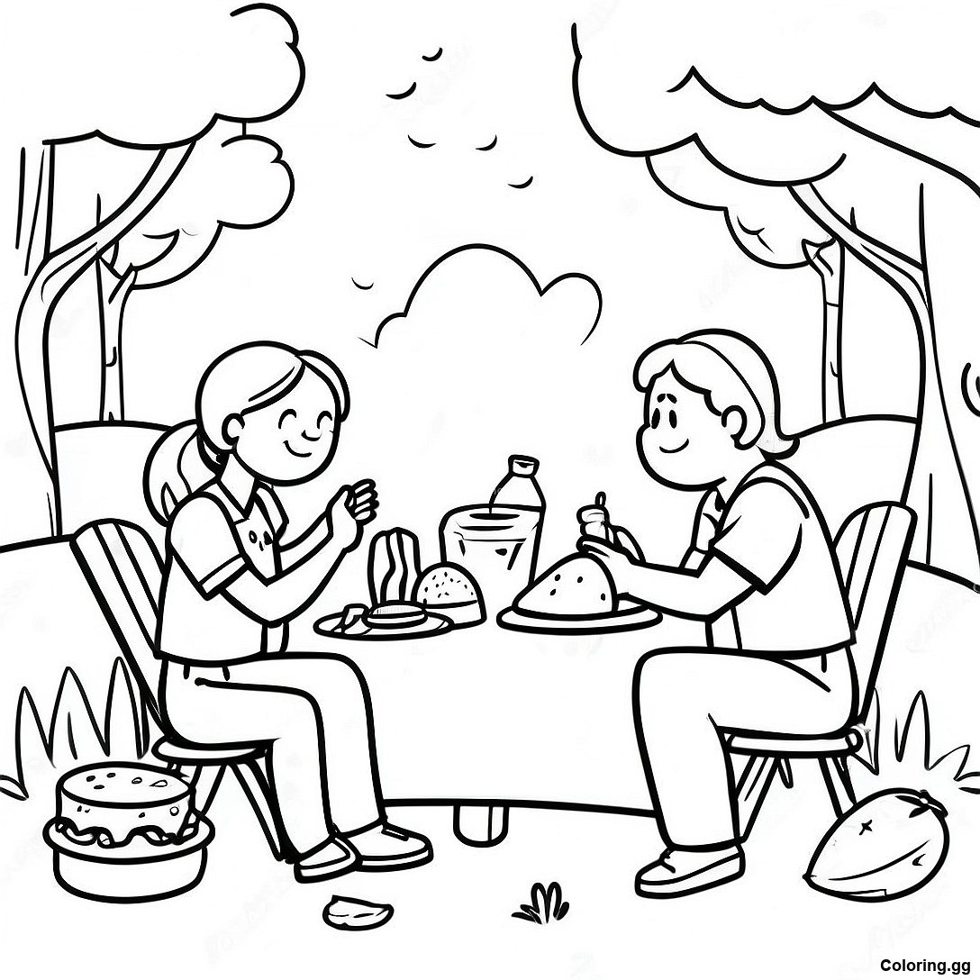 ดาวน์โหลด PDF ที่พิมพ์ได้ของ หน้าระบายสีปิกนิกฤดูร้อนกับเพื่อน