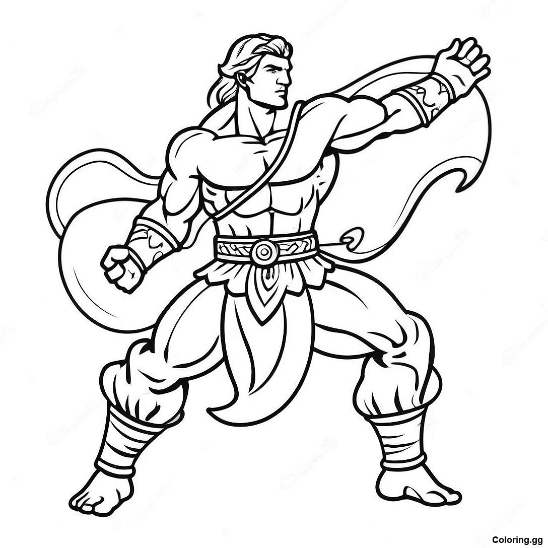 ดาวน์โหลด PDF ที่พิมพ์ได้ของ หน้าระบายสีท่านักรบที่มีพลัง