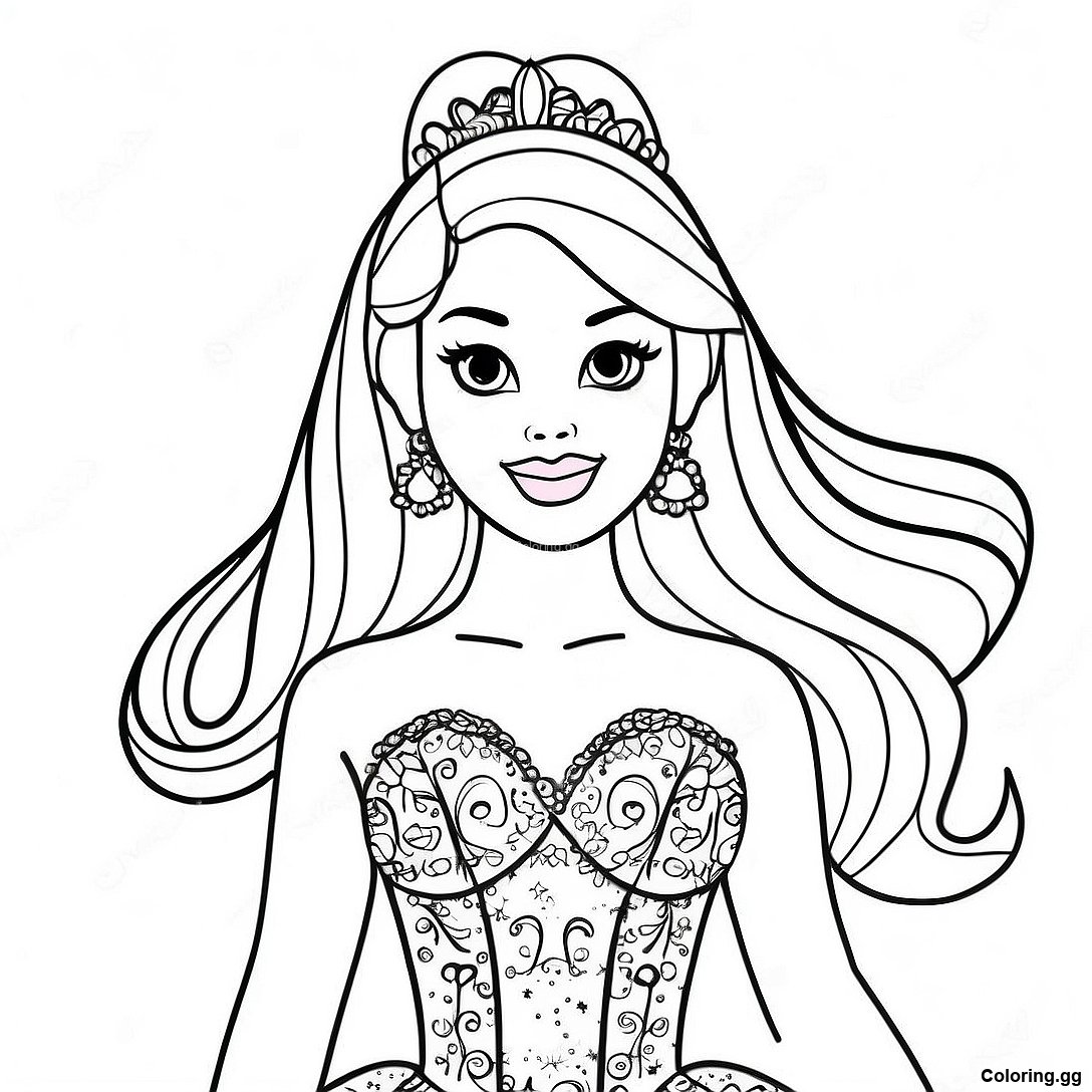 ดาวน์โหลด PDF ที่พิมพ์ได้ของ หน้าระบายสีตุ๊กตาบาร์บี้ในชุดเดรสระยิบระยับ