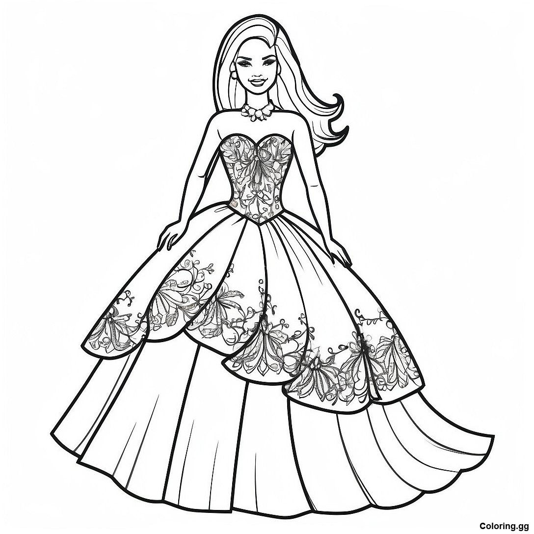 ดาวน์โหลด PDF ที่พิมพ์ได้ของ หน้าระบายสีตุ๊กตาบาร์บี้ในชุดเดรสระยิบระยับ