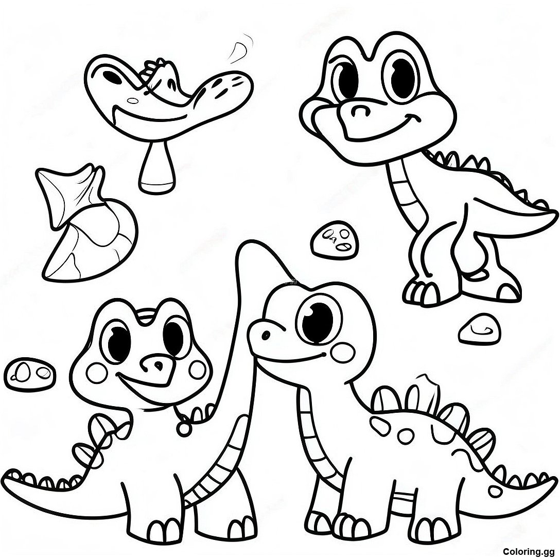 ดาวน์โหลด PDF ที่พิมพ์ได้ของ การระบายสีหน้าเพจครอบครัวไดโนเสาร์ที่เป็นมิตร