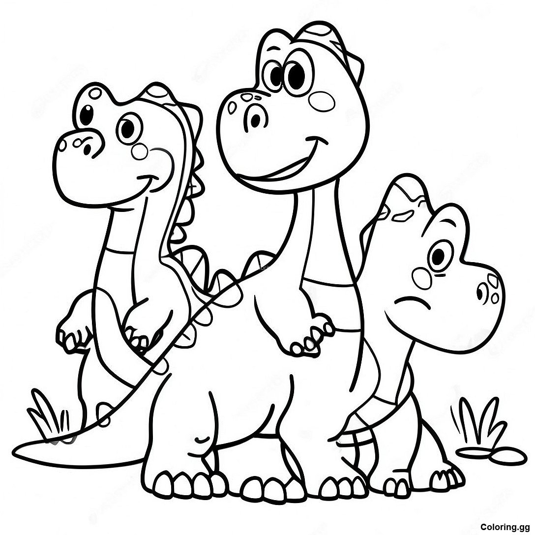 ดาวน์โหลด PDF ที่พิมพ์ได้ของ ครอบครัวไดโนเสาร์ที่เป็นมิตร หน้าระบายสี