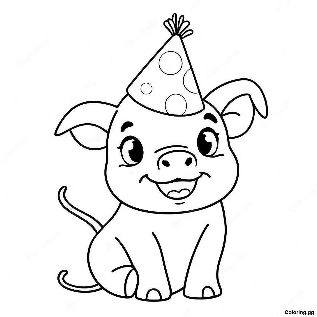 ลูกหมูในหมวกปาร์ตี้ ระบายสี
