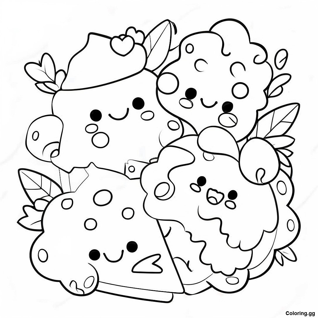 ดาวน์โหลด PDF ที่พิมพ์ได้ของ นัม นอมส์น่ารักเพื่อนอาหาร ระบายสีรูปภาพ