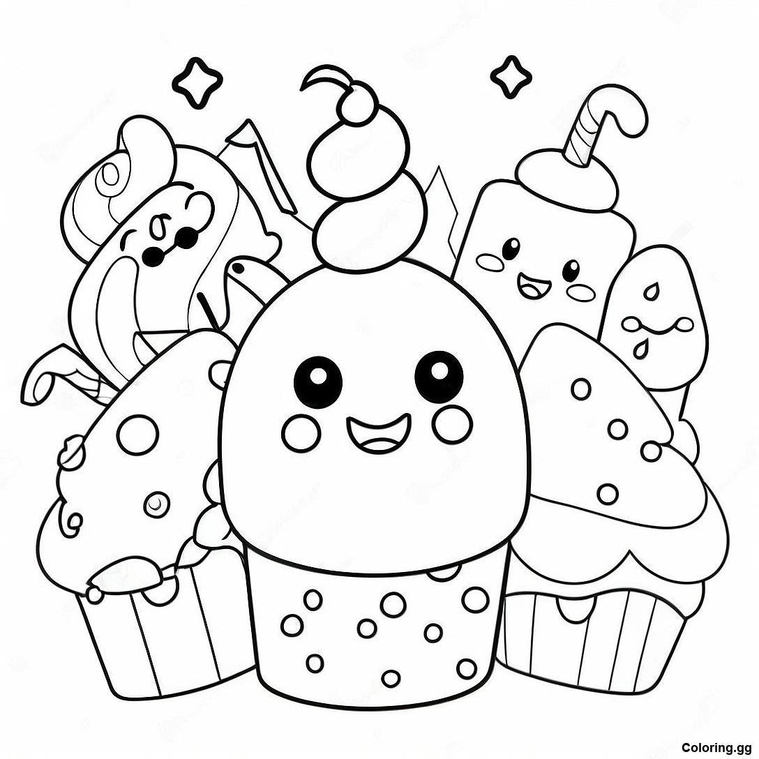 ดาวน์โหลด PDF ที่พิมพ์ได้ของ นัม นอมส์น่ารักกับคัพเค้ก ระบายสีรูปภาพ