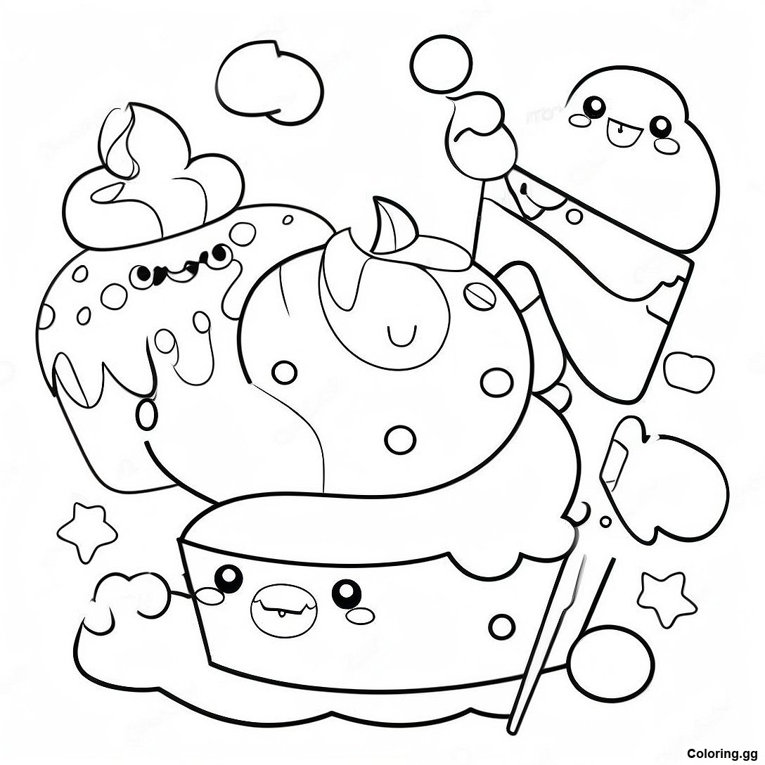 ดาวน์โหลด PDF ที่พิมพ์ได้ของ นัม นอมส์น่ารักกับคัพเค้ก ระบายสีรูปภาพ