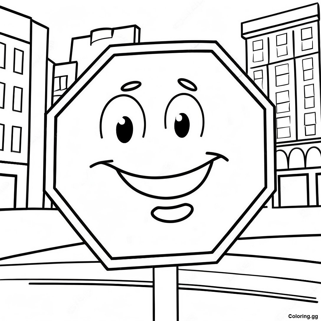 ดาวน์โหลด PDF ที่พิมพ์ได้ของ ป้ายหยุดการ์ตูนในเมือง ระบายสีรูปภาพ