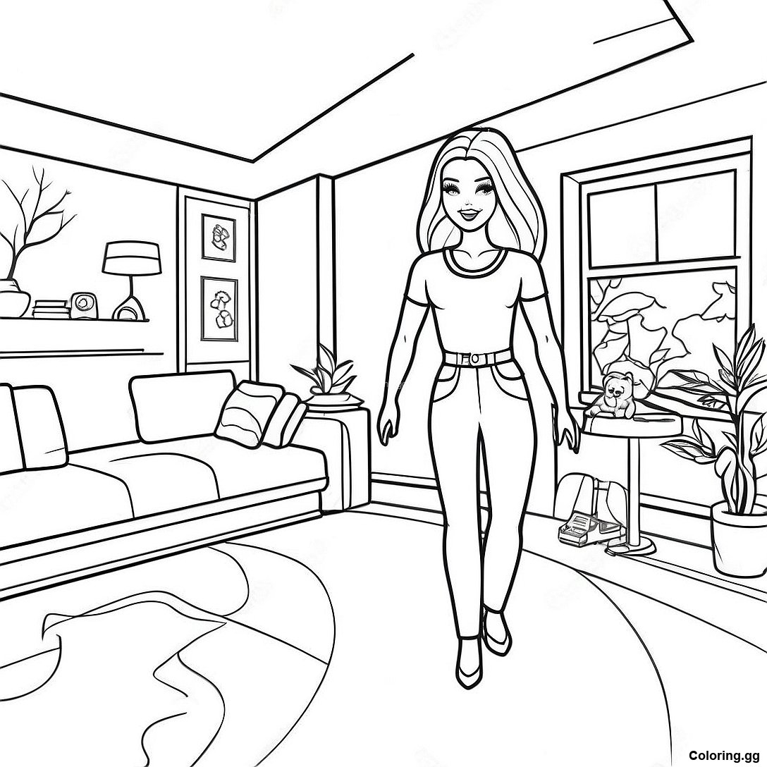 ดาวน์โหลด PDF ที่พิมพ์ได้ของ ระบายสี Barbie ในบ้านในฝัน